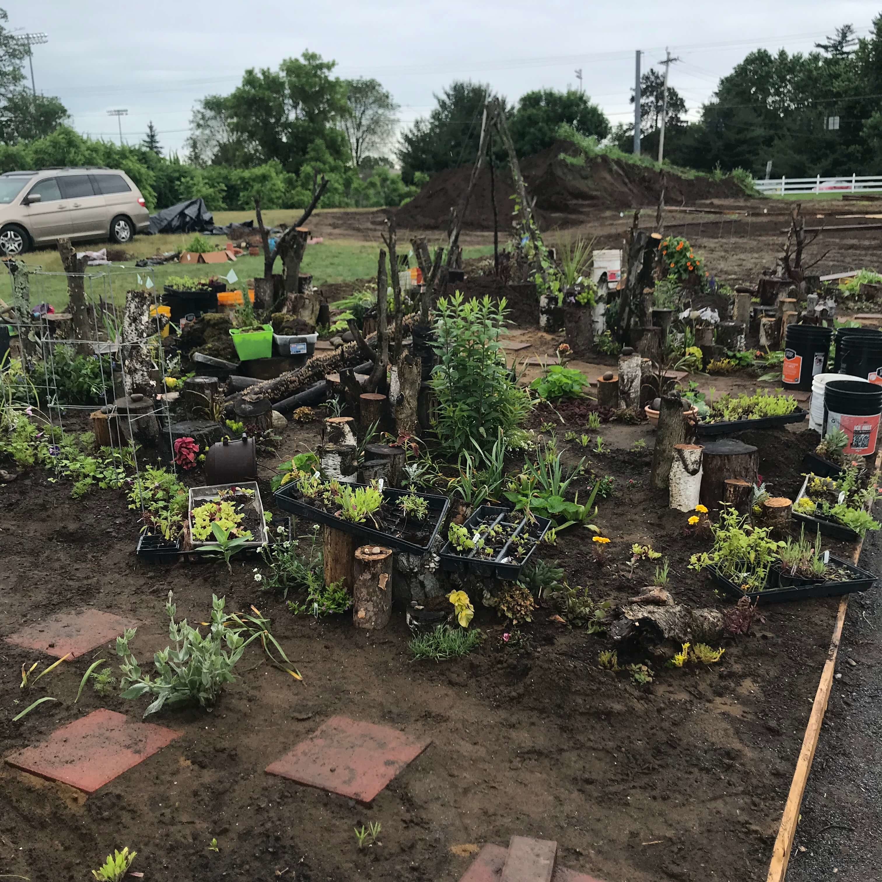 I responded to an email from the farm to Girl Scout leaders about getting involved when the Community Gardens were getting started. My daughter Charlotte was in elementary school and so I volunteered to start a small plot for Girl Scouts. We had so many kids who wanted to do it the first time, so we moved to the back of the Community Garden for more space. We taught the girls how to make fairy houses with natural materials to not contaminate the earth with different glues, and toxins and glitter. The houses they make can sit out and decompose naturally, because we have vegetables growing right close by. We never wanted to do anything that would hurt the earth. Each Girl Scout earned her outdoor art explorer badge for juniors. We still have a waiting list of girls wanting to participate. This year we will open to all community kids, not just Girl Scouts.