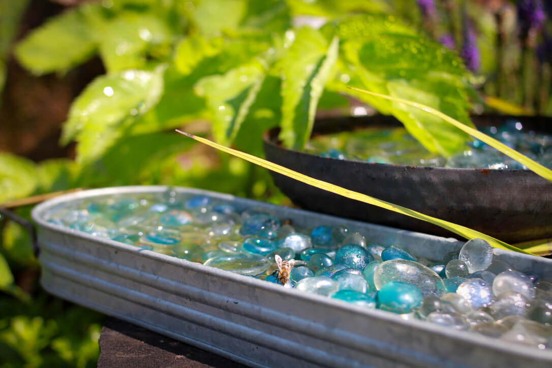 "What's in the water for the bees?" It's just water. They're just thirsty. They live right here and we sell their honey!
